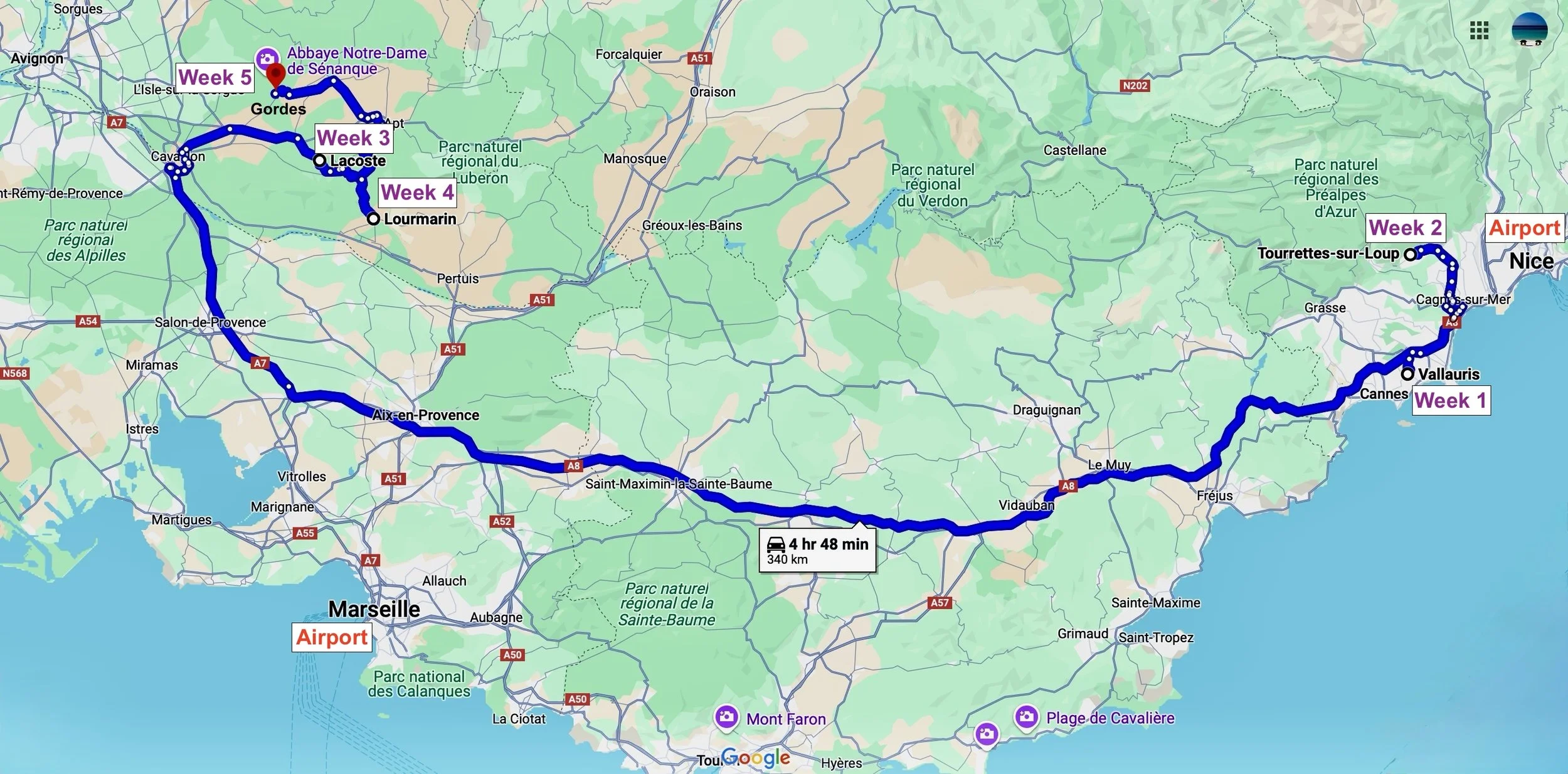 For weeks 3, 4 & 5 you can fly into Marseille or take the train into Avignon or Marseille.